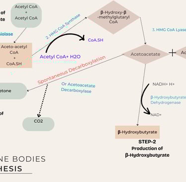 Ketogenesis is the metabolic process by which ketone bodies are synthesized from fatty acids and ketogenic amino acids in the liver. When carbohydrate intake is limited, the body enters a state of ketosis. This process begins with the mobilization of fatty acids from adipose tissue. In the liver, these fatty acids undergo beta-oxidation, generating acetyl-CoA. When acetyl-CoA accumulates—due to a shortage of oxaloacetate (often depleted in carbohydrate-restricted states)—it begins to condense, leading to the formation of acetoacetate. From there, acetoacetate can be further reduced to beta-hydroxybutyrate or spontaneously decarboxylated to form acetone. This intricate pathway illustrates how our body cleverly adapts to fuel shortages, ensuring that critical organs continue to function even in times of scarcity.